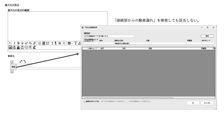 「接続部からの酸素漏れ」が「気体/空気の漏出」に変わっているのがわかると思います。