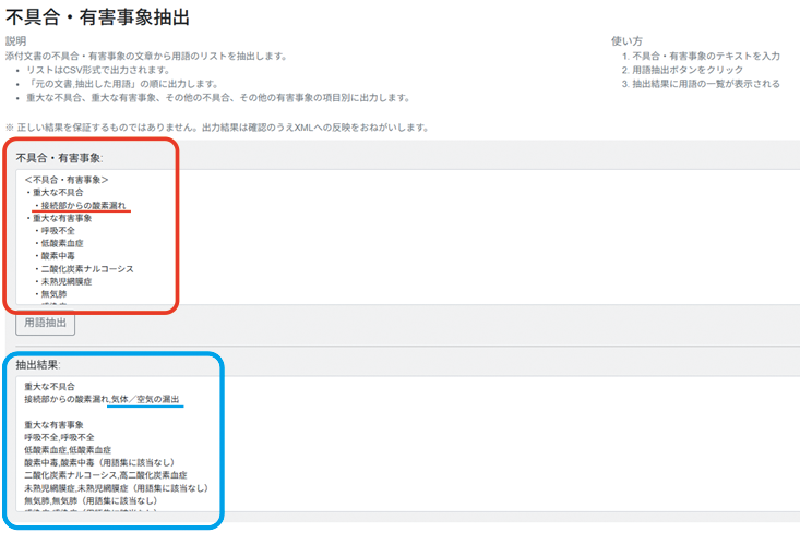 こちらの「接続部からの酸素漏れ」をPMDA提供のXMLツールにいれても同一用語がないのでヒットしません。