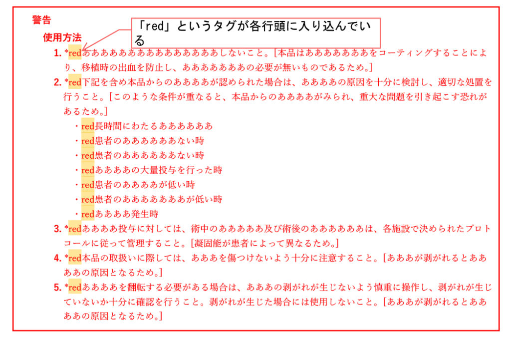 添付文書からTEXT情報を流用した方が安全確実なので、当社では基本的に添付文書のwordまたはPDFからコピー&ペーストしてイチからXMLを作成していきます。